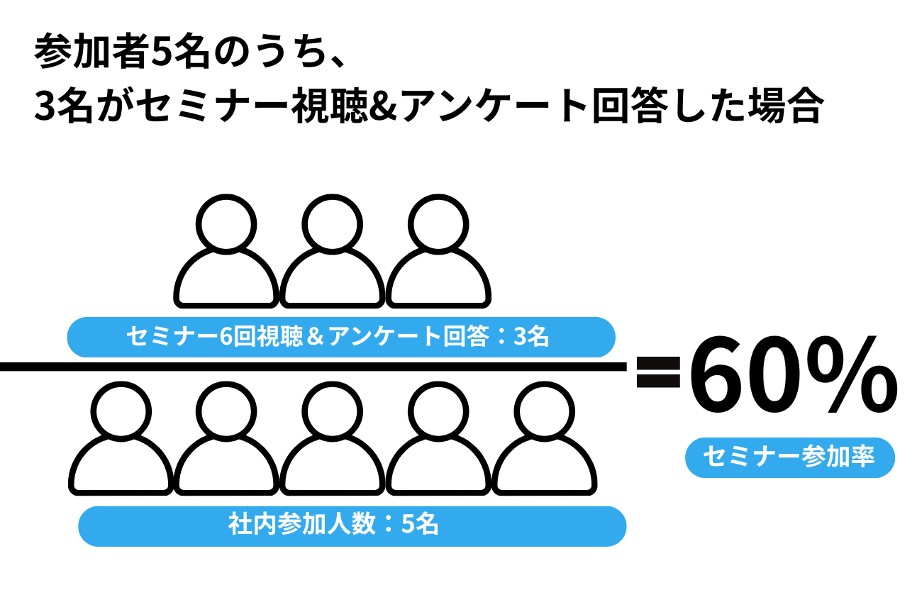 セミナー参加およびアンケート回答を6回以上行った参加者の割合(%)を算出します。