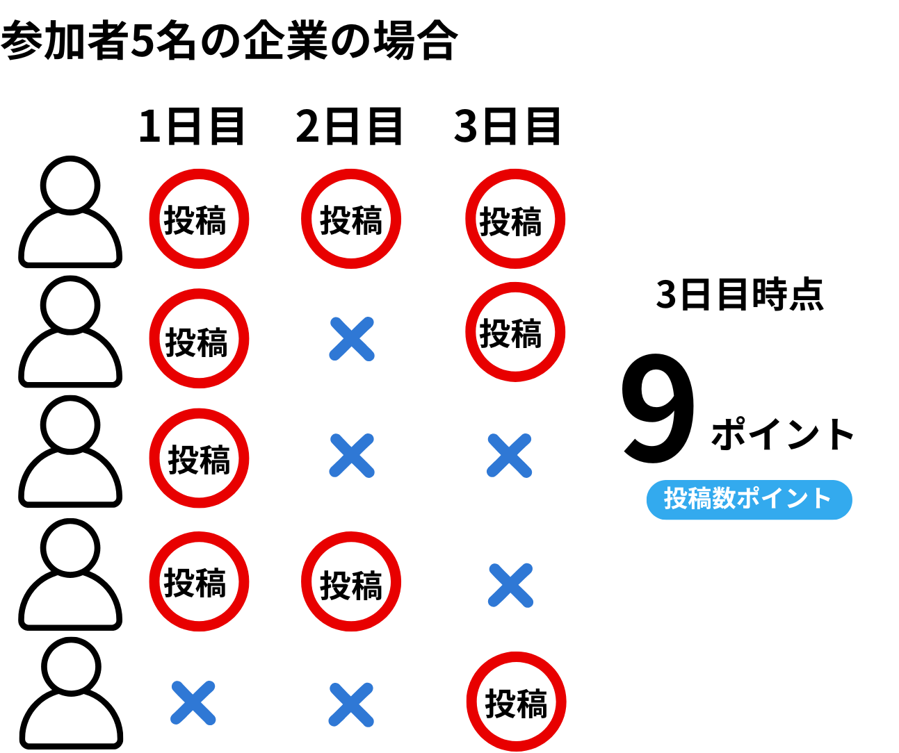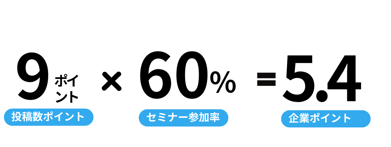 ・総チャレンジ投稿数 ✖️セミナー参加率 で企業ポイントを算出します。